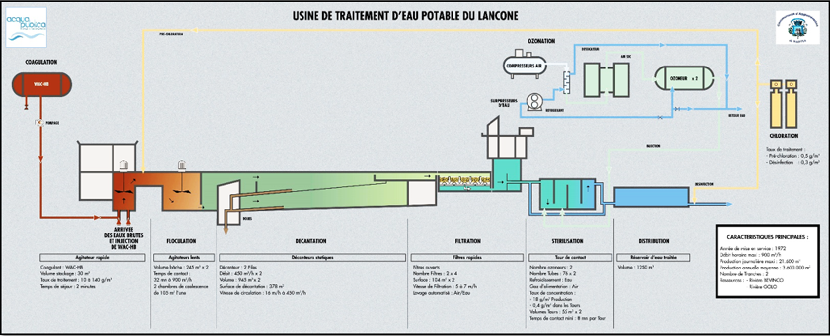 L’eau brute captée est donc transportée jusqu’à l’Usine du Lancone pour être rendue potable, c’est-à-dire consommable sans risque.